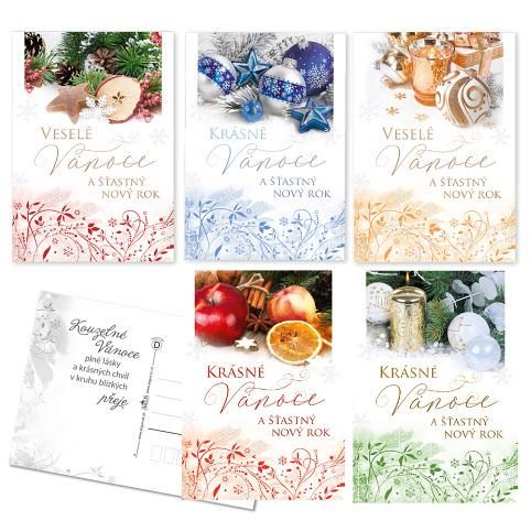 Vánoční pohlednice s textem na zadní straně. Originální technologie zpracování od společnosti ARGUS - "Na detailu záleží!"