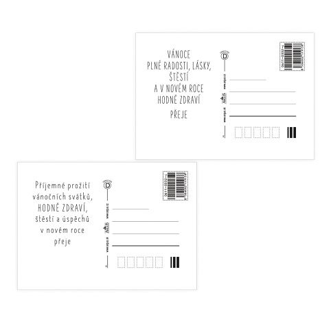 Vánoční pohlednice s textem na zadní straně.* originální technologie zpracování od společnosti ARGUS - "Na detailu záleží!"* POZOR!!!: Cena uvedená na eshopu je za 1 ks pohlednice. Motiv si není možné vybrat - zasíláme dle dostupnosti skladu. Je však možné do poznámky k objednávce uvést, o který motiv máte zájem, v případě jeho dostupnosti Vám bude tento zaslán. Pokud je objednáno 2 a více kusů - posíláme mix pohlednic