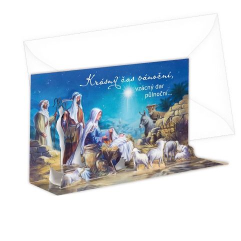 Vánoční přání s textem a pop up efektem, který vytváří dojem prostoru. Součástí přání je barevně sladěna obálka. Originální technologie zpracování přáníčka od společnosti ARGUS - "Na detailu záleží!"