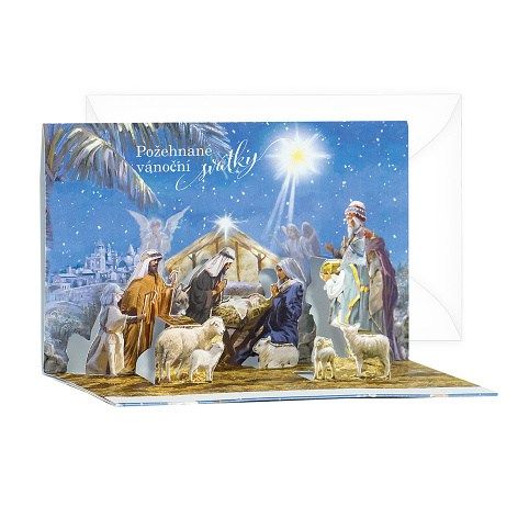 Vánoční přání s textem a pop up efektem, který vytváří dojem prostoru. Součástí přání je barevně sladěna obálka. Originální technologie zpracování přáníčka od společnosti ARGUS - "Na detailu záleží!"