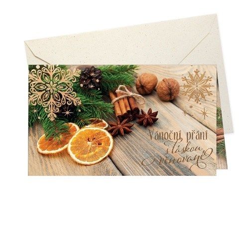 Vánoční přání s textem uvnitř přání. Součástí přání je i barevně sladěna obálka. Originální technologie zpracování od společnosti ARGUS - "Na detaile záleží!"