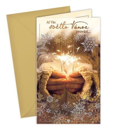 Vánoční přání. Technologie zpracování: PUV, reliéfní text a ražba. Text uvnitř přáníčka: "... i v roce, který přichází. Krásné svátky, hodně štěstí, zdraví a lásky v novém roce přeje". Součástí vánočního přání je také barevně sladěná obálka. Originální technologie zpracování od společnosti ARGUS - "Na detaile záleží!"