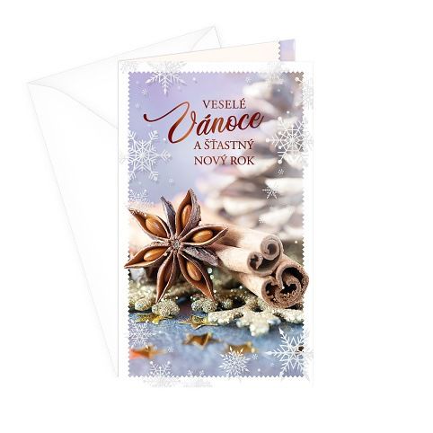 Vánoční přání, technologie zpracování PUV, ražba, termografie. Uvnitř přáníčka text: Krásné vánoční svátky plné radosti, lásky, štěstí, v novém roce hodně zdraví a úspěšných dní přeje. Součástí vánočního přání je také barevně sladěna obálka. Originální technologie zpracování od společnosti ARGUS - "Na detaile záleží!"