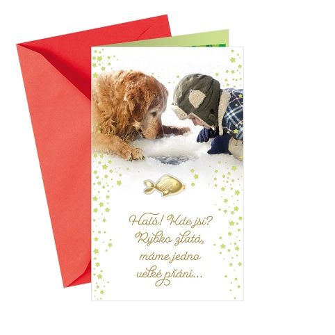 Vánoční přání, technologie zpracování termografie, ražba, výsek. Uvnitř přáníčka text: ... ať se Vám na Vánoce všechna krásná přání splní! Šťastné a veselé... Součástí vánočního přání je také barevně sladěna obálka. Originální technologie zpracování od společnosti ARGUS - "Na detaile záleží!"