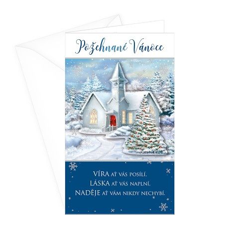 Vánoční přání, technologie zpracování slepotisk, ražba, výsek a termografie. Text uvnitř přáníčka. Součástí balení vánočního přání je i barevně sladěna obálka. Originální technologie zpracování od společnosti ARGUS - "Na detaile záleží!"