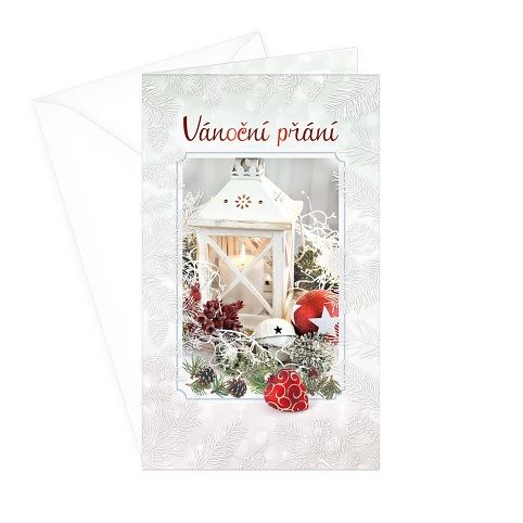 Vánoční přání, technologie zpracování termografie, reliéfní ražba, slepotisk. Uvnitř přáníčka text: Už je tu zas, ten krásný vánoční čas a vánoční nálada je všude kolem nás... Ty nejkrásnější Vánoce a v novém roce hodně zdraví, štěstí a spokojenosti přeje Součástí vánočního přání je také barevně sladěna obálka. Originální technologie zpracování od společnosti ARGUS - "Na detaile záleží!"