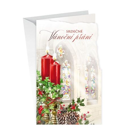 Vánoční přání. Technologie zpracování slepotisk a zlatá ražba. Text uvnitř přání. Součástí vánočního přání je také barevně sladěná obálka. Originální technologie zpracování od společnosti ARGUS - "Na detaile záleží!"