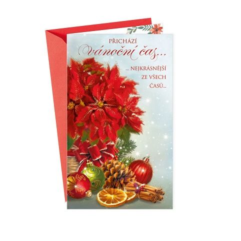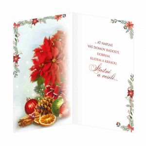 Vánoční přání dvoustranové, technologie zpracování slepotisk a zlatá ražba. Text uvnitř přání. Součástí vánočního přání je také barevně sladěná obálka. Originální technologie zpracování od společnosti ARGUS - "Na detaile záleží!"