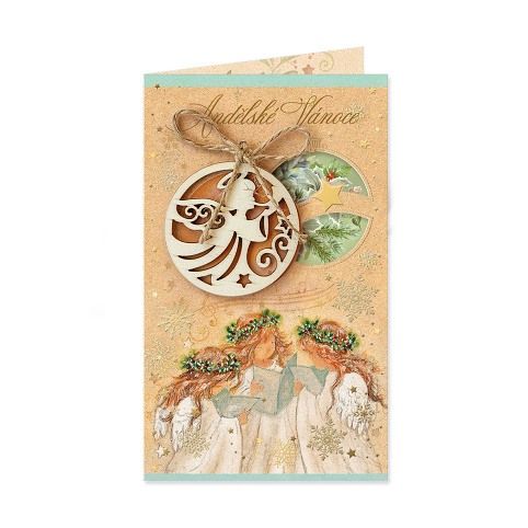 Vánoční přání s dřevěnou ozdobou, která je zároveň malým dárkem pro toho, komu chcete popřát krásné Vánoce. Text uvnitř přánička. Součástí přání je barevně sladěna obálka. Originální technologie zpracování přáníčka od společnosti ARGUS - "Na detailu záleží!"