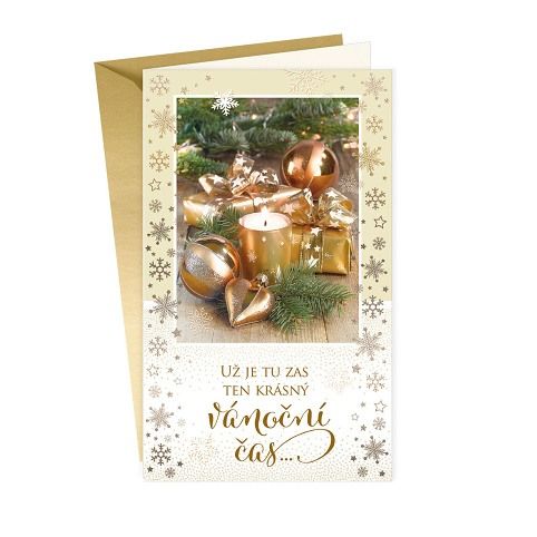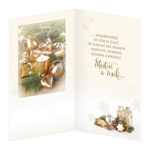 Vánoční přání. Technologie zpracování dvojnásobná reliéfní ražba. Text uvnitř přání: ...nejkrásnější ze všech časů ať naplní Váš domov radostí, dobre, klidem a krásou. Šťastné a veselé... Součástí balení vánočního přání je i barevně sladěna obálka. Originální technologie zpracování od společnosti ARGUS - "Na detaile záleží!"