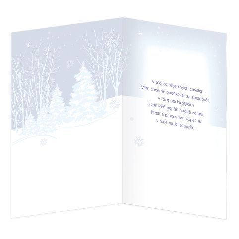 Vánoční pozdrav s přáním do novému roku, poděkování obchodnímu partnerovi za spolupráci. S textem uvnitř přáníčka. Součástí balení vánočního přání je i barevně sladěna obálka. Originální technologie zpracování od společnosti ARGUS - "Na detaile záleží!"
