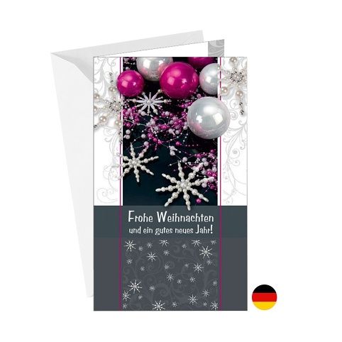 Vánoční přání s německým textem. Bez textu uvnitř. Součástí přání je i barevně sladěna obálka. Originální technologie zpracování od společnosti ARGUS - "Na detaile záleží!"