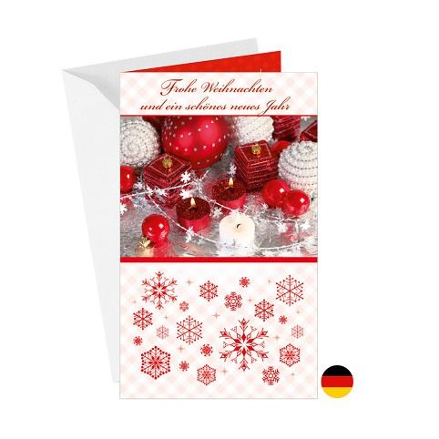 Vánoční přání s německým textem. Bez textu uvnitř. Součástí přání je i barevně sladěna obálka. Originální technologie zpracování od společnosti ARGUS - "Na detaile záleží!"