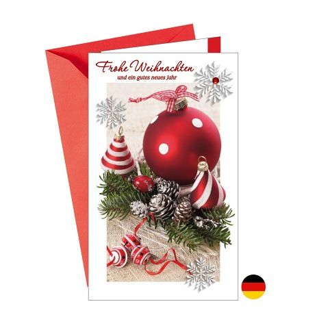 Vánoční přání s německým textem. Bez textu uvnitř. Součástí přání je i barevně sladěna obálka. Originální technologie zpracování od společnosti ARGUS - "Na detaile záleží!"