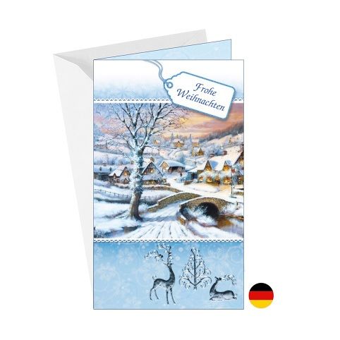 Vánoční přání s německým textem. Bez textu uvnitř. Součástí přání je i barevně sladěna obálka. Originální technologie zpracování od společnosti ARGUS - "Na detaile záleží!"