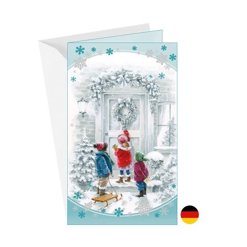Vánoční přání s německým textem. Bez textu uvnitř. Součástí přání je i barevně sladěna obálka. Originální technologie zpracování od společnosti ARGUS - "Na detaile záleží!"