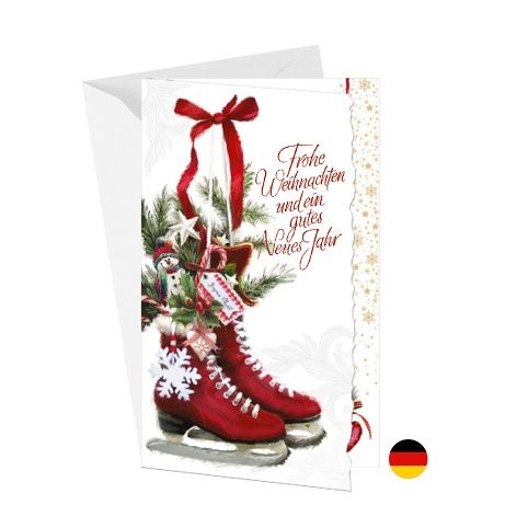 Vánoční přání s německým textem. Bez textu uvnitř. Součástí přání je i barevně sladěna obálka. Originální technologie zpracování od společnosti ARGUS - "Na detaile záleží!"