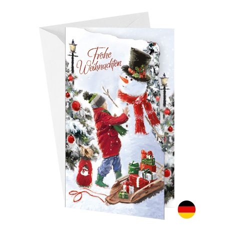 Vánoční přání s německým textem. Bez textu uvnitř. Součástí přání je i barevně sladěna obálka. Originální technologie zpracování od společnosti ARGUS - "Na detaile záleží!"