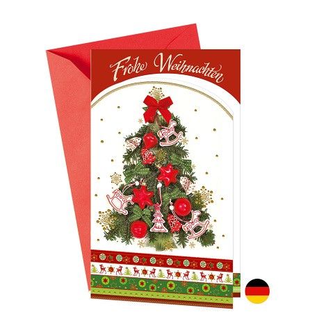 Vánoční přání s německým textem. Bez textu uvnitř. Součástí přání je i barevně sladěna obálka. Originální technologie zpracování od společnosti ARGUS - "Na detaile záleží!"