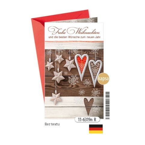 Vánoční přání s kapsou na peníze.Německý text. Součástí přání je i barevně sladěna obálka. Originální technologie zpracování od společnosti ARGUS - "Na detaile záleží!"