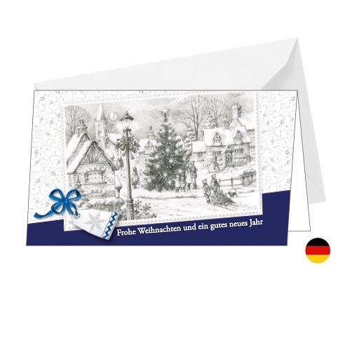 Vánoční přání s německým textem. Bez textu uvnitř. Součástí přání je i barevně sladěna obálka. Originální technologie zpracování od společnosti ARGUS - "Na detaile záleží!"