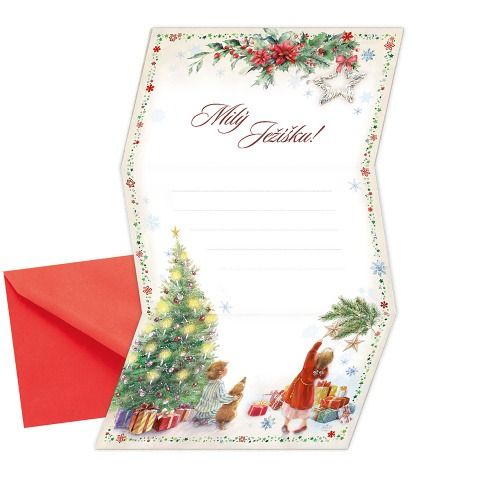 Dopis Ježíškovi.* krásně ilustrovaný dopisní skládací papír pro děti i dospělé, kteří chtějí Ježíškovi sdělit svá přání* dopis můžete jednoduše položit za okno nebo jej poslat poštou přímo Ježíškovi* součástí balení je i barevně sladěná obálka* originální technologie zpracování od společnosti ARGUS - "Na detailu záleží!"