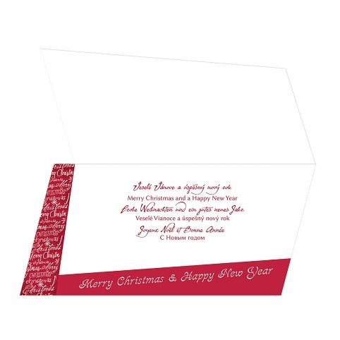 Vánoční pozdrav s anglickým textem na přání.* text uvnitř přání český, anglický, nemecký, francouzský, slovenský a ruský * součástí vánočního pozdravu je barevně sladěná obálka* originální technologie zpracování od společnosti ARGUS - "Na detailu záleží!"