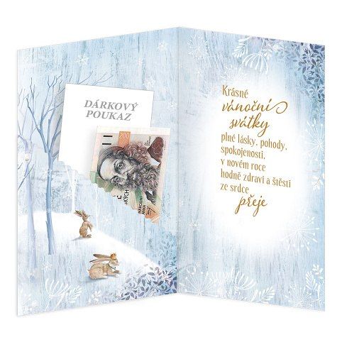 Vánoční přání s kapsi na peníze.Text uvnitř blahopřání. Součástí balení vánočního pozdravu je také barevně sladěná obálka. Originální technologie zpracování od společnosti ARGUS - "Na detailu záleží!"