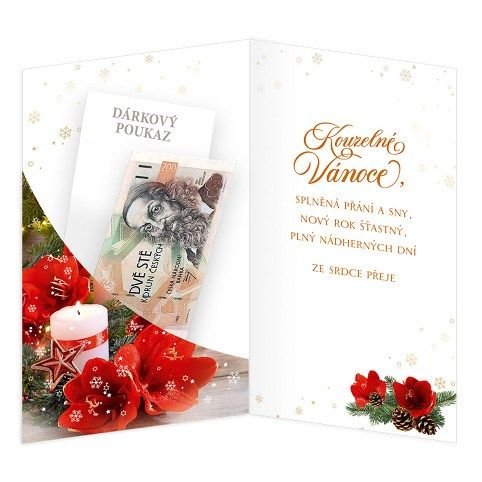 Vánoční přání s kapsi na peníze.Text uvnitř blahopřání. Součástí balení vánočního pozdravu je také barevně sladěná obálka. Originální technologie zpracování od společnosti ARGUS - "Na detailu záleží!"
