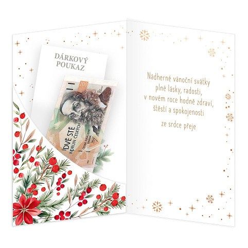 Vánoční přání s kapsi na peníze.* text uvnitř blahopřání* součástí balení vánočního pozdravu je také barevně sladěná obálka* originální technologie zpracování od společnosti ARGUS - "Na detailu záleží!"