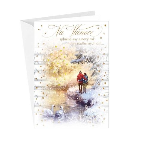 Vánoční pozdrav s textem uvnitř přání. Po otevření zahraje píseň "Karel Gott: Bílé Vánoce" a LED světlo rozsvítí "padající sníh". Součástí vánočního pozdravu je barevně sladěná obálka. Originální technologie zpracování od společnosti ARGUS - "Na detailu záleží!"