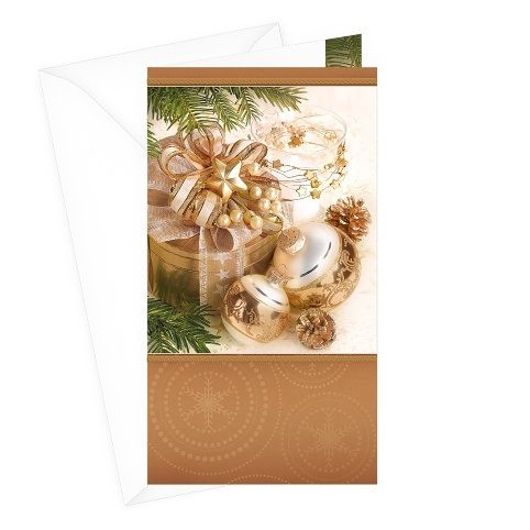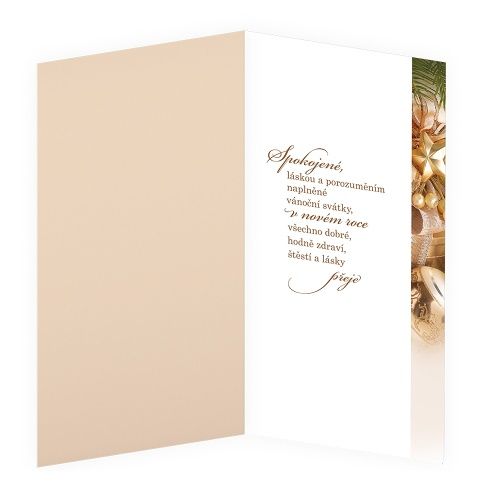 Vánoční přání s textem uvnitř: "Spokojené, láskou a porozuměním naplněné vánoční svátky, v novém roce všechno dobré, hodně zdraví, štěstí a lásky" Součástí blahopřání je i barevně sladěna obálka. Originální technologie zpracování od společnosti ARGUS - "Na detaile záleží!"