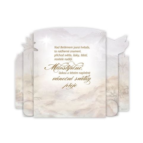 Vánoční přání pop up s textem uvnitř. Skládací efekt umocňuje dojem prostoru. Součástí přání je i barevně sladěna obálka. Originální technologie zpracování od společnosti ARGUS - "Na detaile záleží!"