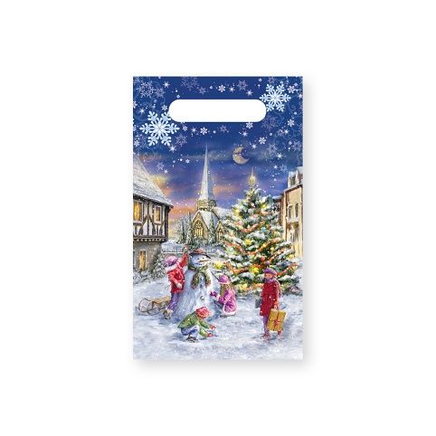 Vánoční igelitová taška je velmi jednoduchým a praktickým společníkem v období vánočních svátků. Celoplošně potištěná s vyseknutým uchem a rozšířeným dnem. Materiál LDPE.
