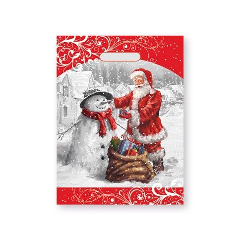 Vánoční igelitová taška je velmi jednoduchým a praktickým společníkem v období vánočních svátků. Celoplošně potištěná s vyseknutým uchem a rozšířeným dnem. Materiál LDPE.