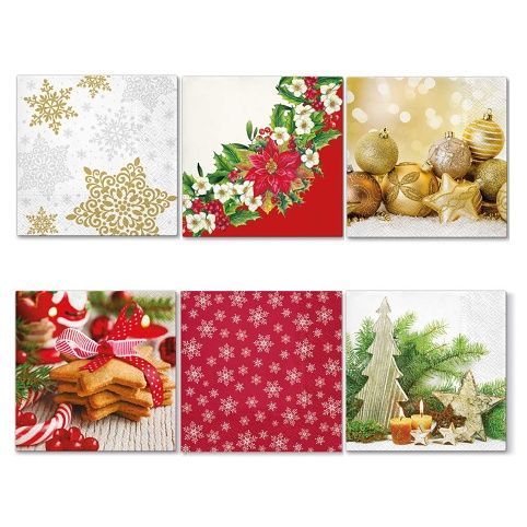 Vánoční ubrousky - 33x33 cm - třívrstvé - v balení je 20 ks ubrousek - prodejní balení mix 12 motivů - motivy se mohou opakovat. Minimální odběr je 12 ks balení ubrousku.