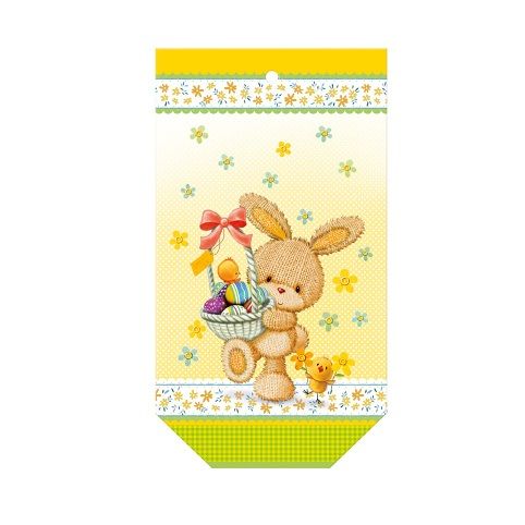 Velikonoční sáček pro krásné a rychlé vytvoření sladkých balíčků nejen pro vaše ratolesti. Oboustranný potisk, pytlík má rozšířené dno, které poskytuje více místa pro jeho obsah a po stažení je samostatně stojící. Materiál - LDPE.