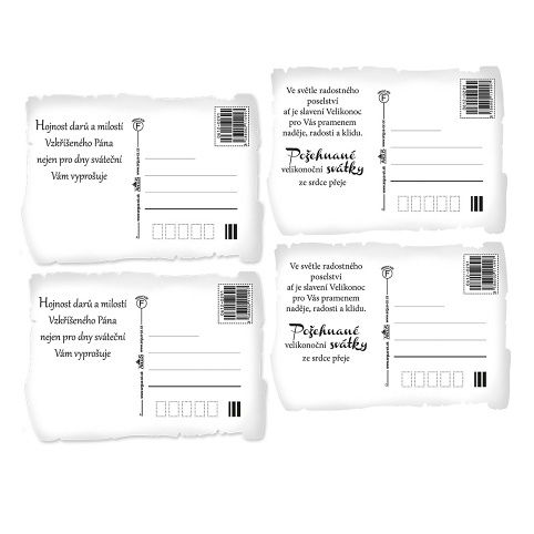Velikonoční pohlednice s textem na zadní straně. Originální technologie zpracování od společnosti ARGUS - "Na detailu záleží!"
