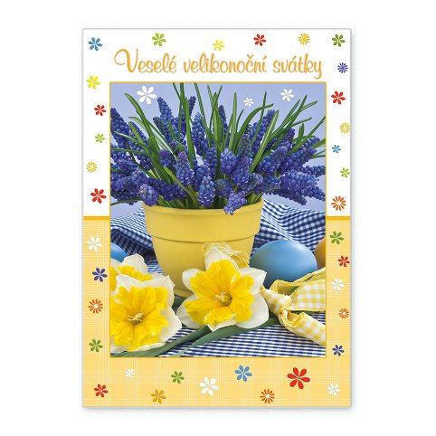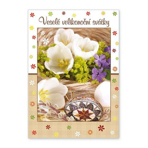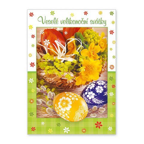 Velikonoční pohlednice s textem na zadní straně. Originální technologie zpracování od společnosti ARGUS - "Na detailu záleží!"