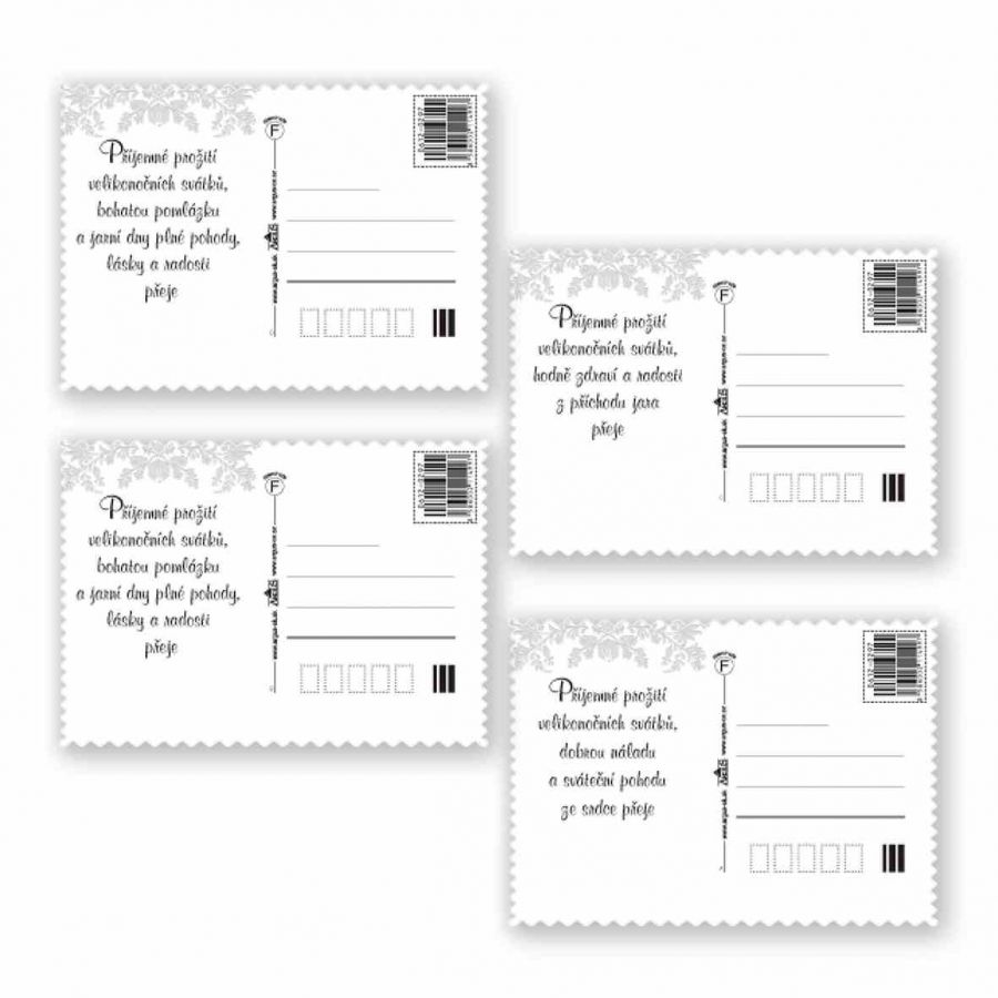 Velikonoční pohlednice s textem na zadní straně. Originální technologie zpracování od společnosti ARGUS - "Na detailu záleží!"