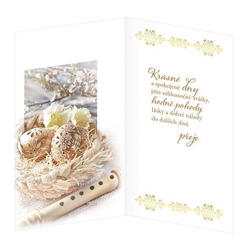 Velikonoční přání s textem uvnitř. Jeho součástí je barevně sladěna obálka. Originální technologie zpracování od společnosti ARGUS - "Na detailu záleží!"