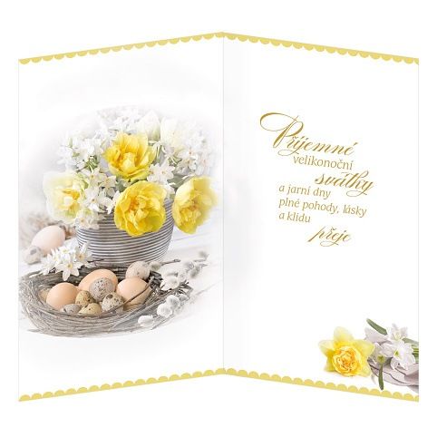 Velikonoční přání s textem uvnitř. Jeho součástí je barevně sladěna obálka. Originální technologie zpracování od společnosti ARGUS - "Na detailu záleží!"