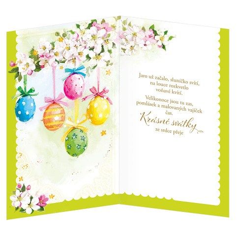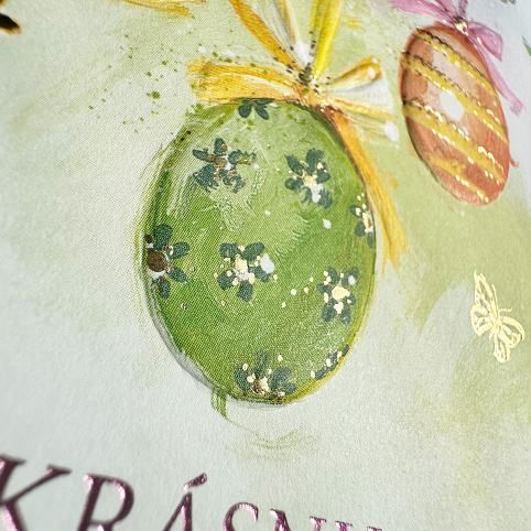 Velikonoční přání s textem uvnitř. Jeho součástí je barevně sladěna obálka. Originální technologie zpracování od společnosti ARGUS - "Na detailu záleží!"