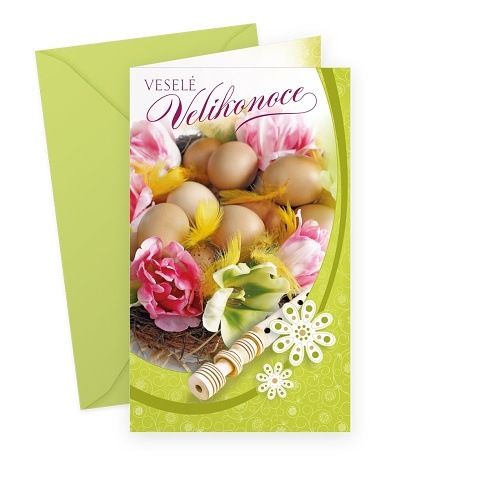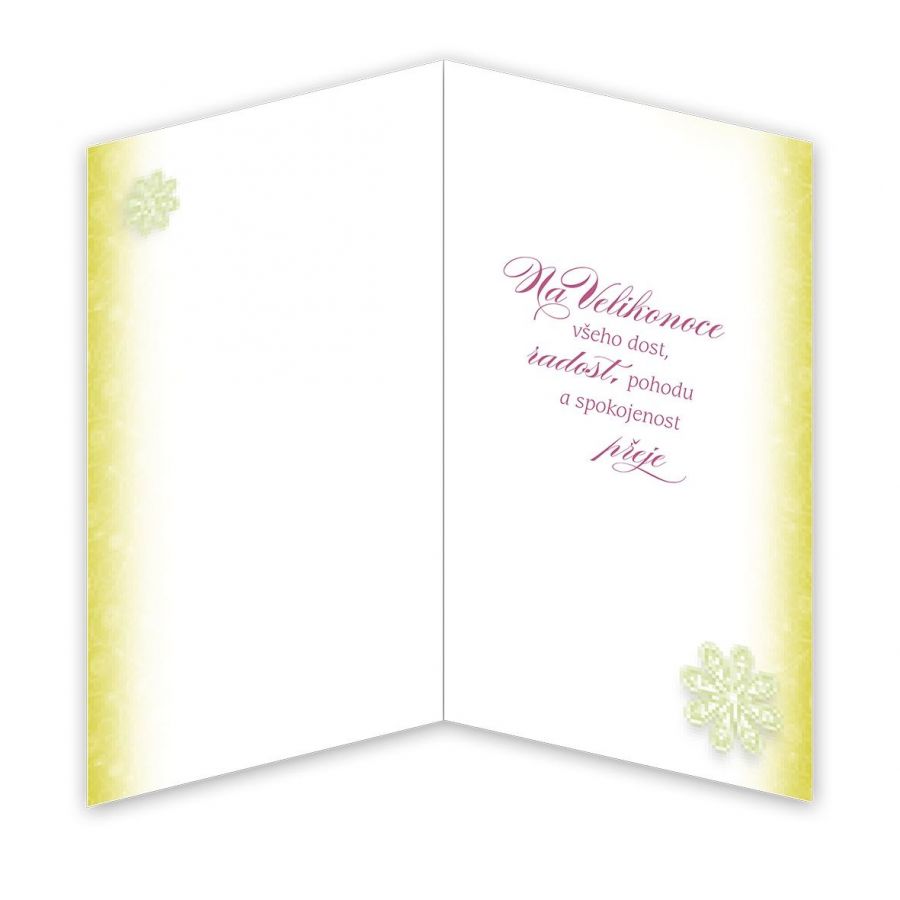 Velikonoční přání s textem uvnitř. Jeho součástí je barevně sladěna obálka. Originální technologie zpracování od společnosti ARGUS - "Na detailu záleží!"