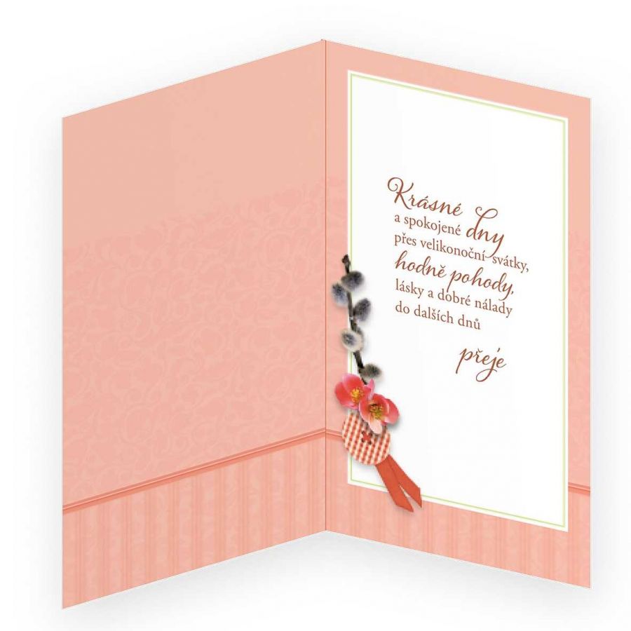 Velikonoční přání s textem uvnitř. Jeho součástí je barevně sladěna obálka. Originální technologie zpracování od společnosti ARGUS - "Na detailu záleží!"