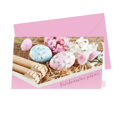 Velikonoční přání s textem uvnitř. Jeho součástí je barevně sladěna obálka. Originální technologie zpracování od společnosti ARGUS - "Na detailu záleží!"