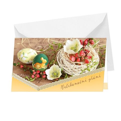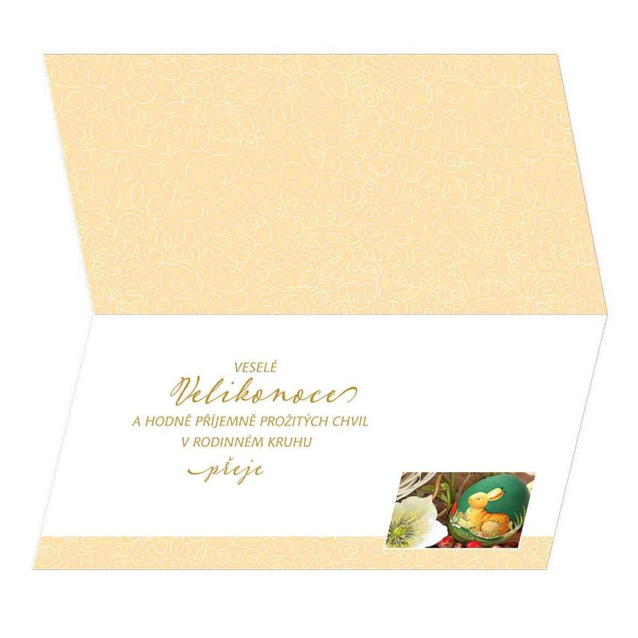 Velikonoční přání s textem uvnitř. Jeho součástí je barevně sladěna obálka. Originální technologie zpracování od společnosti ARGUS - "Na detailu záleží!"