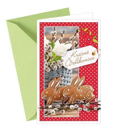 Velikonoční přání s textem uvnitř. Jeho součástí je barevně sladěna obálka. Originální technologie zpracování od společnosti ARGUS - "Na detailu záleží!"