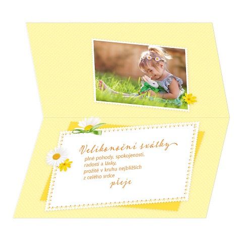 Velikonoční přání s textem uvnitř. Jeho součástí je barevně sladěna obálka. Originální technologie zpracování od společnosti ARGUS - "Na detailu záleží!"