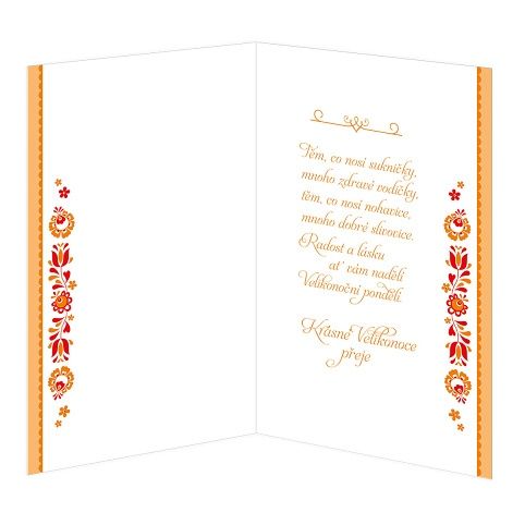 Velikonoční přání s textem uvnitř. Jeho součástí je barevně sladěna obálka. Originální technologie zpracování od společnosti ARGUS - "Na detailu záleží!"
